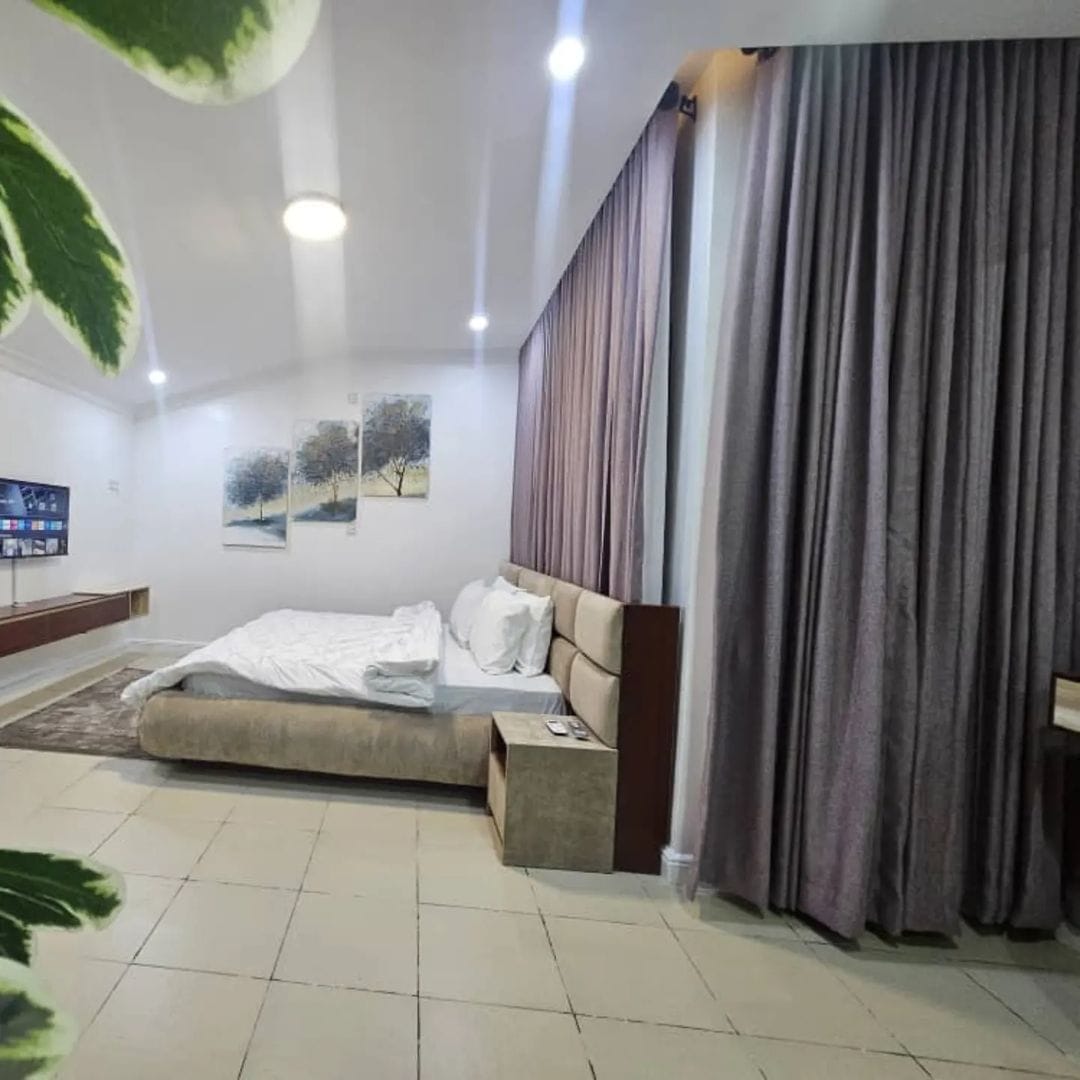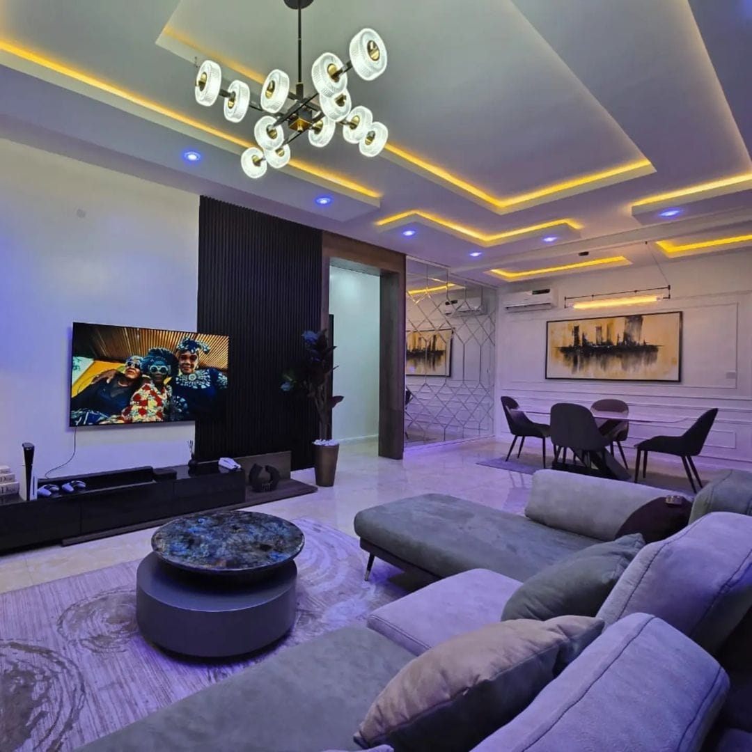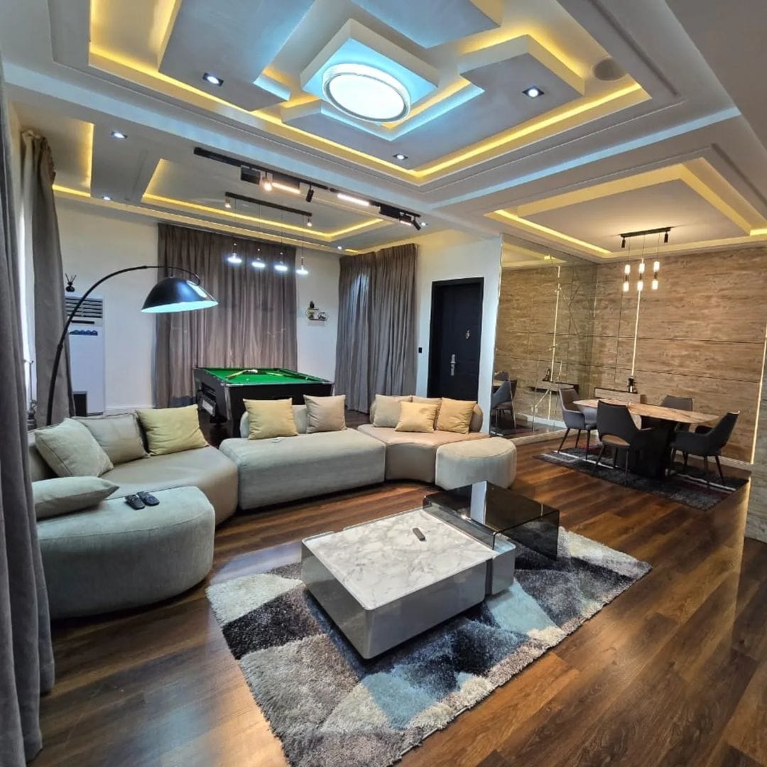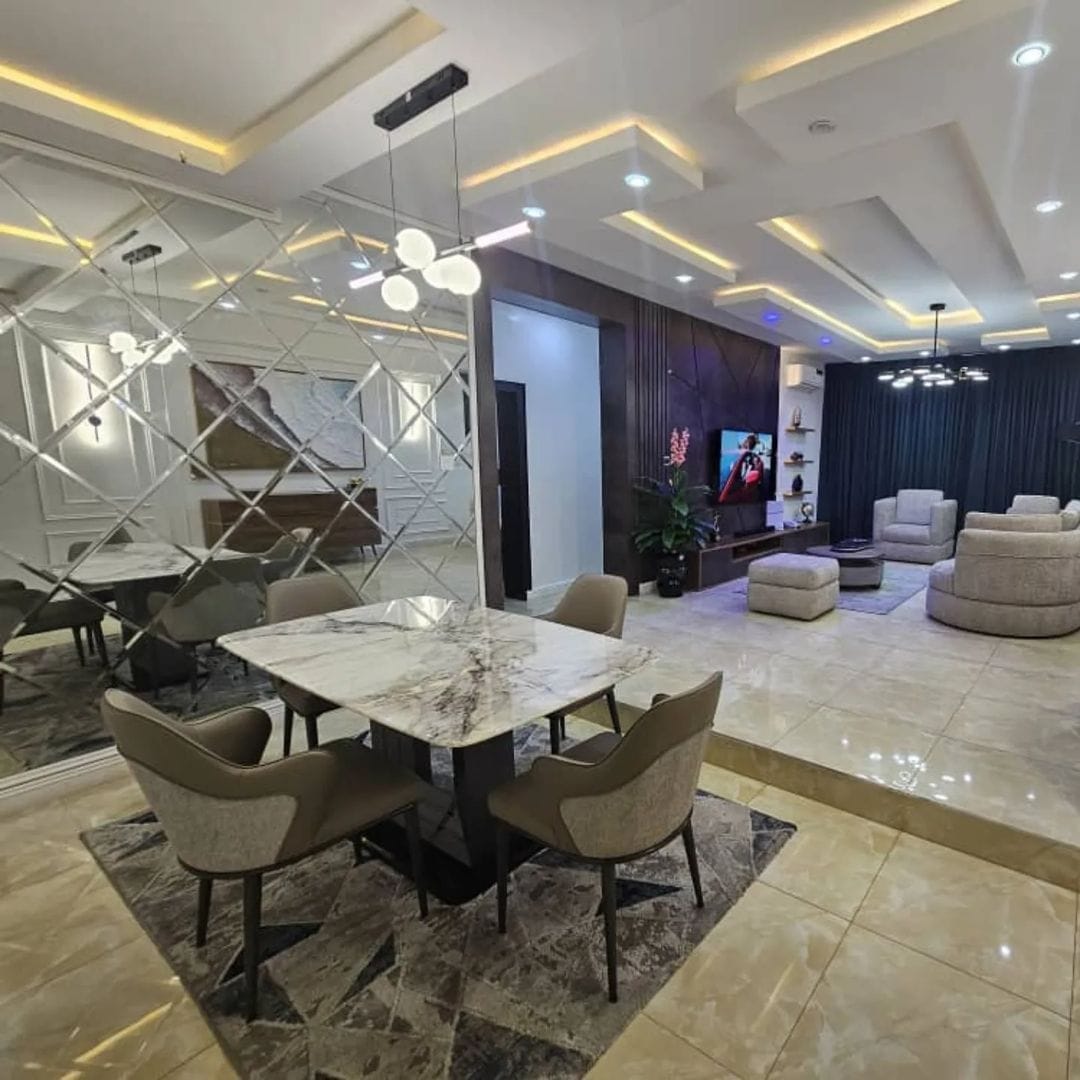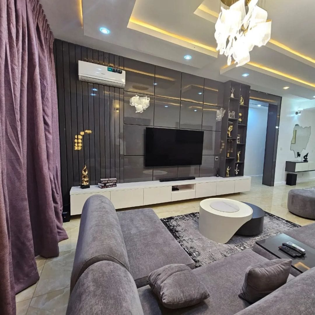 - Furnishing: - 3bedroom all ensuite - visitors toilet - 24 hours electricity - 24 hours security - ps5 - spacious parking space - washing machine/dryer - refrigerator - fast and reliable free wifi - dstv - netflix - cctv - well equipped kitchen - highly secured buildi